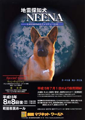 | 全国を旅公演し150回を迎える「地雷探知犬ニーナ」。 劇中では、ウォンの「もしも〜」が流れているそうです。  |